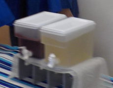 ジュースの味比べ。 園でとれたジューンベリーのジュースと、みんなが作った梅ジュースの味比べを行いました。 紅白のジュースに、どちらも好評!! おかわり続出でした。